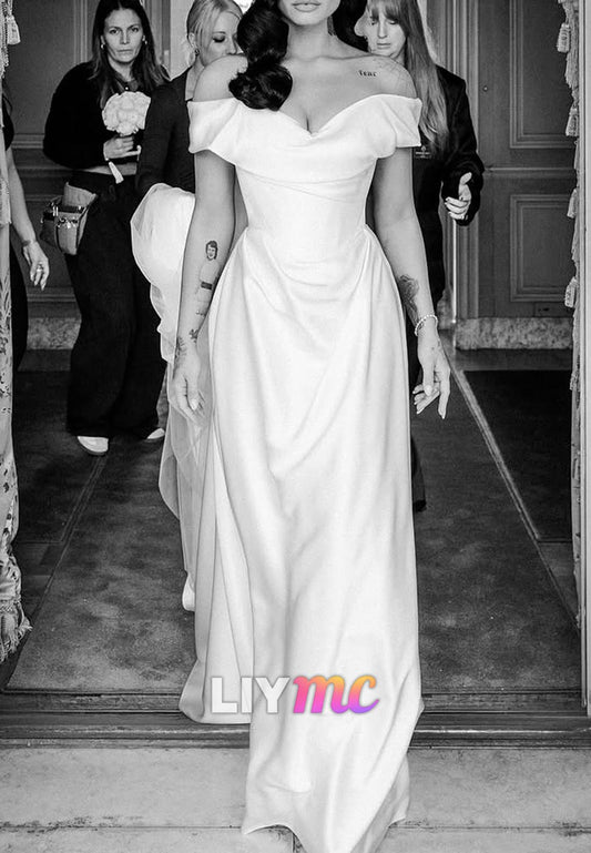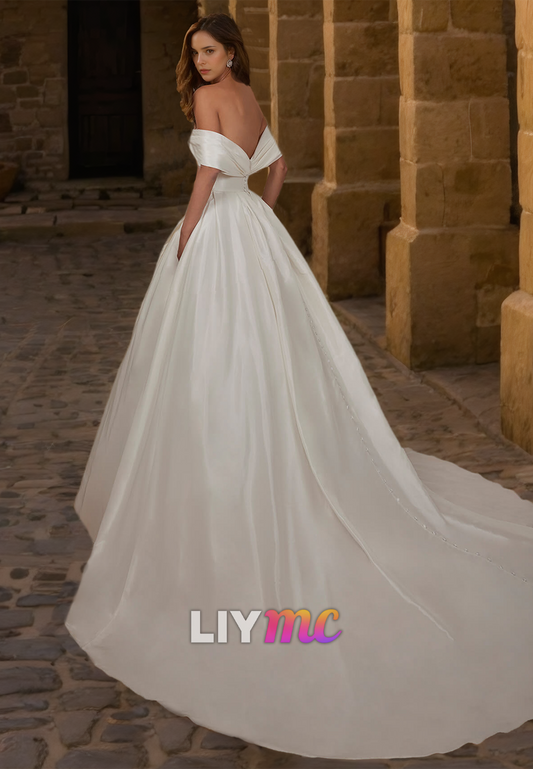 Off-Shoulder Strapless Ruched Satin A-Line Simple Wedding Dress