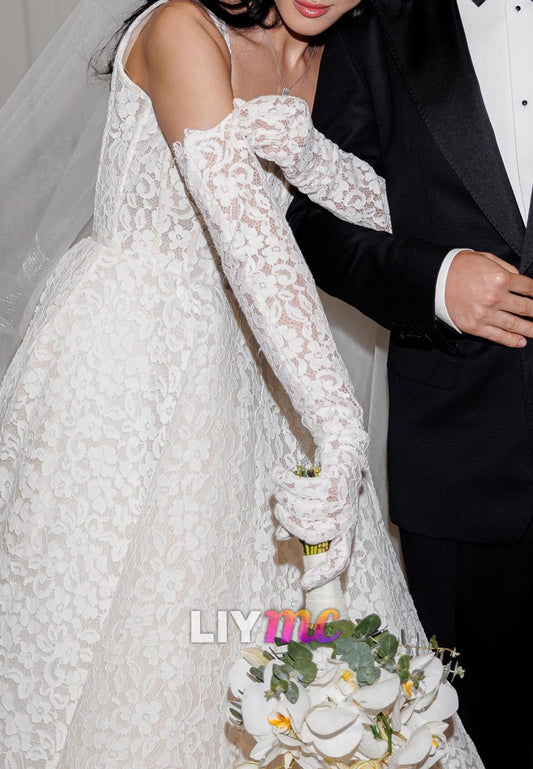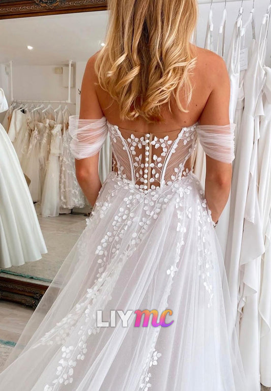 Off-Shoulder Lace Appliques A-Line Wedding Dress