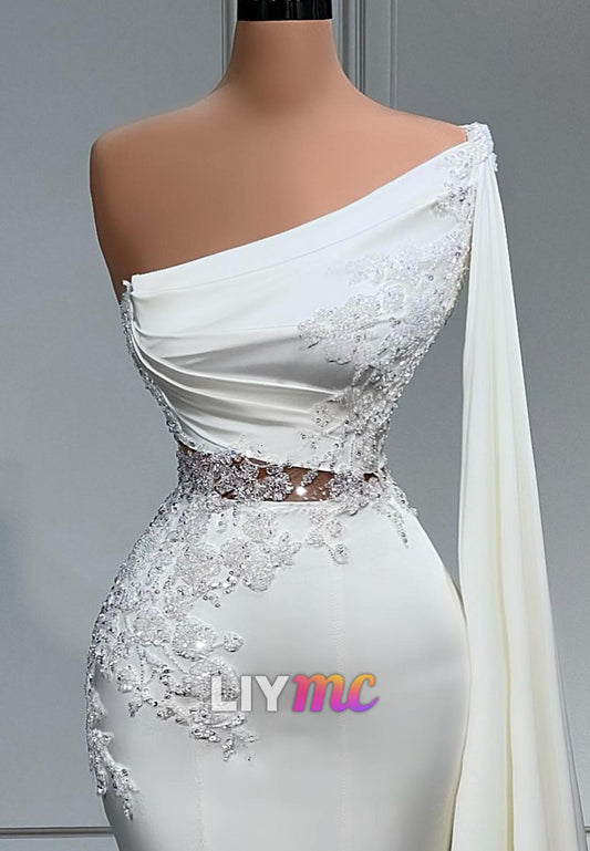 One Shoulder Sleeveless Beaded Mermaid Wedding Dress