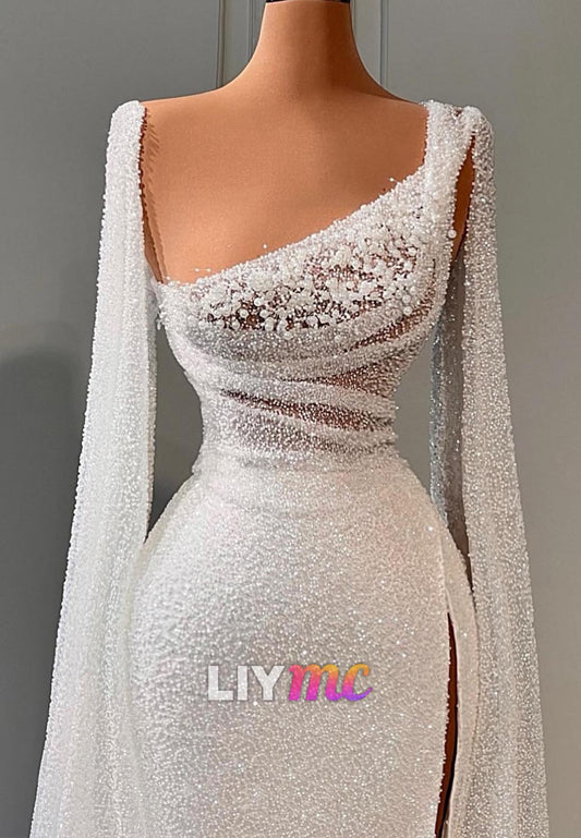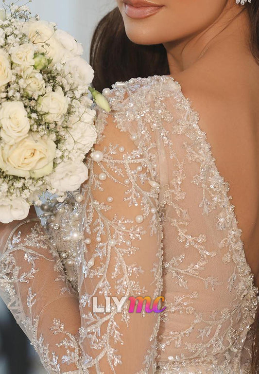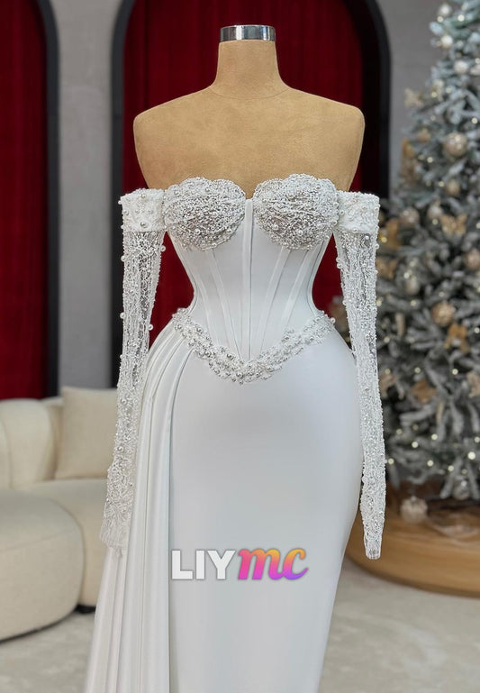 Sweetheart Long Sleeves Pearl Mermaid Wedding Dress