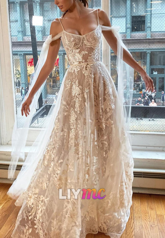 Scoop Spaghetti Straps Appliques A-Line Summer Wedding Dress