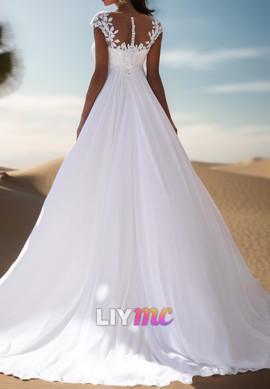 Square Cap Sleeves Appliques A-Line Boho Wedding Dress
