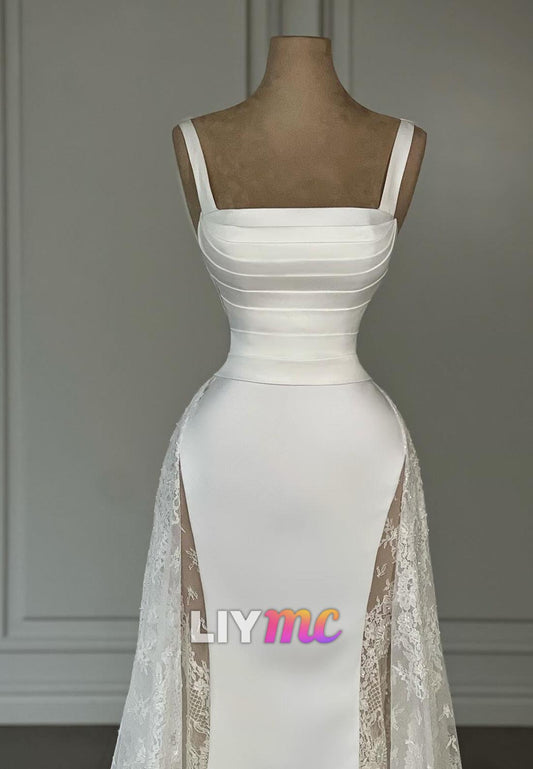 Square Straps Pleated Appliques Mermaid Wedding Dress