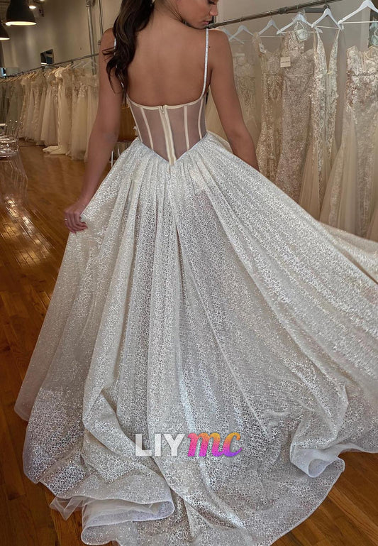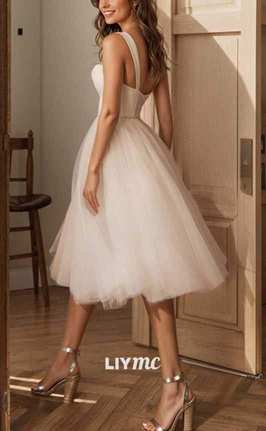 LW946 - Sweetheart Straps Sleeveless A-Line Tulle Beach Wedding Dress
