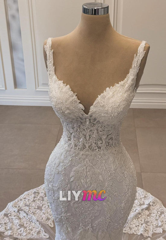 V-Neck Straps Sleeveless Sleek Mermaid Wedding Dress