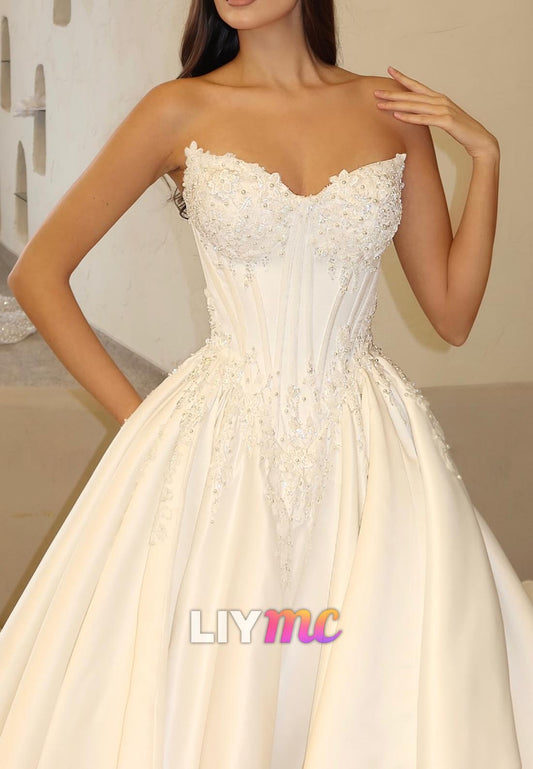 Sweetheart Strapless Appliques Ball Gown Wedding Dress