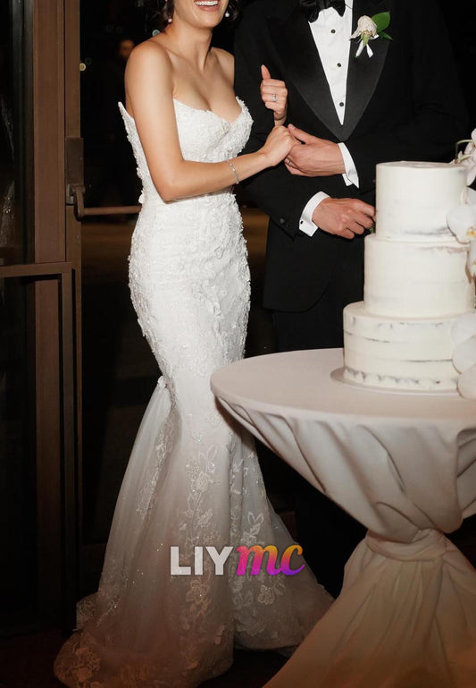 Sweetheart Appliques Strapless Mermaid Wedding Dress