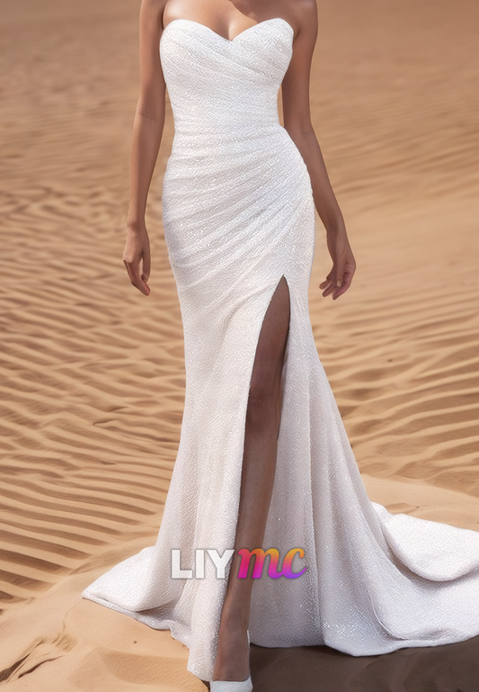 Sweetheart Sleeveless Pleated Mermaid Beach Wedding Dress