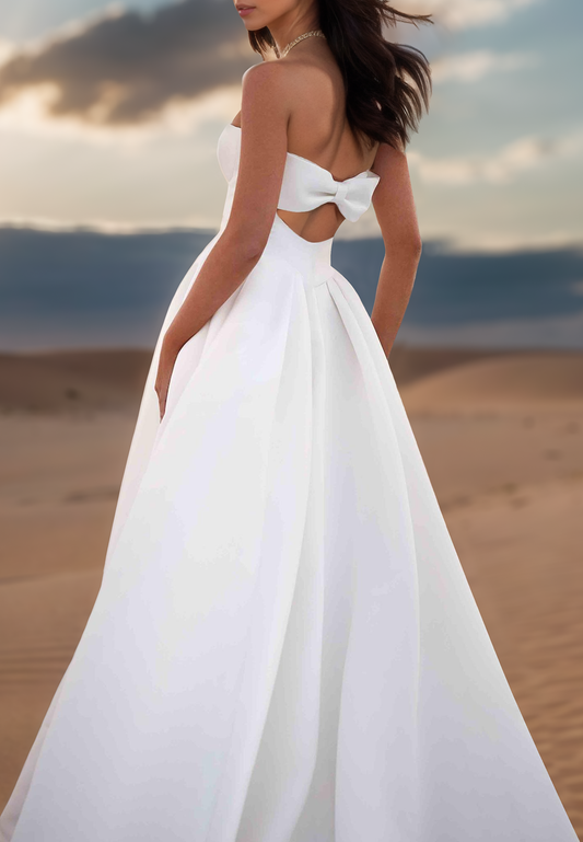 Off-Shoulder Sleeveless Pleated Satin Simple A-Line Wedding Dress