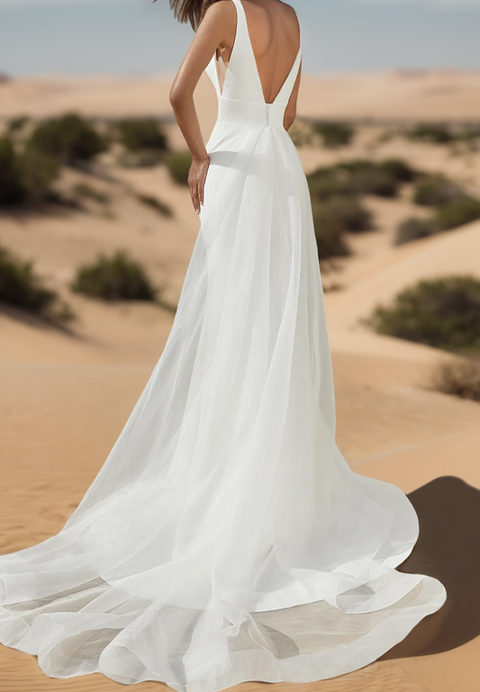 V-Neck Sleeveless Sleek Mermaid Beach Wedding Dress