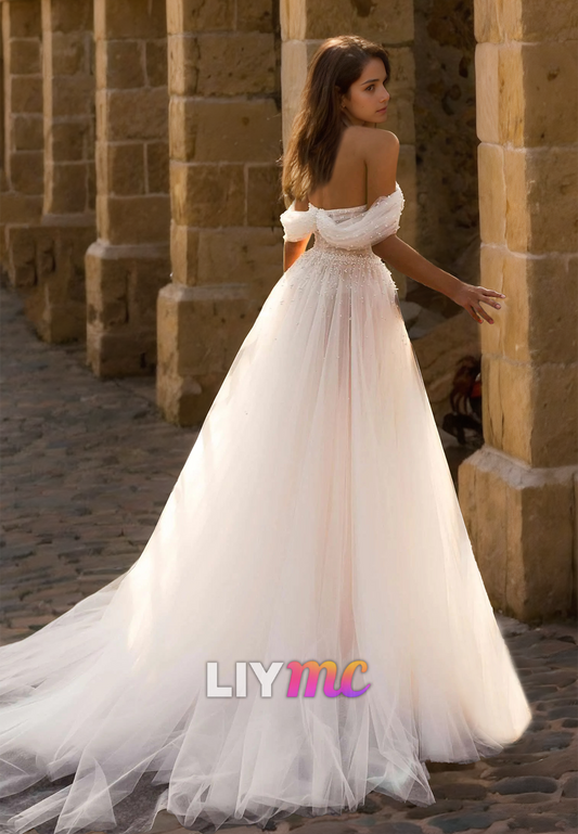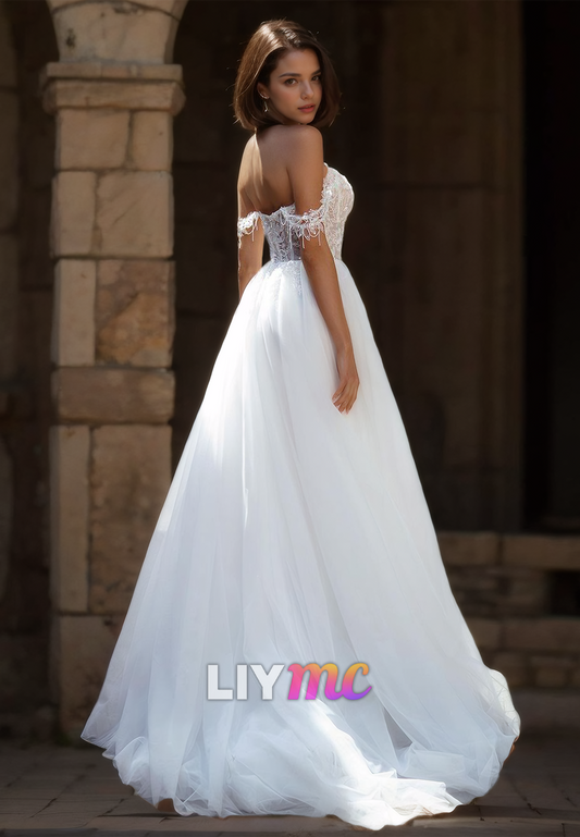 Off-Shoulder Strapless Appliques Tulle A-Line Wedding Dress