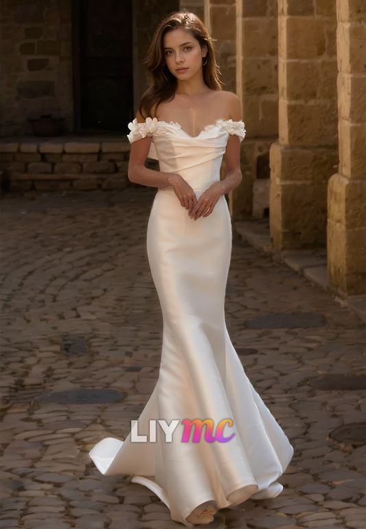 Off-Shoulder Strapless Appliques Tulle Mermaid Wedding Dress