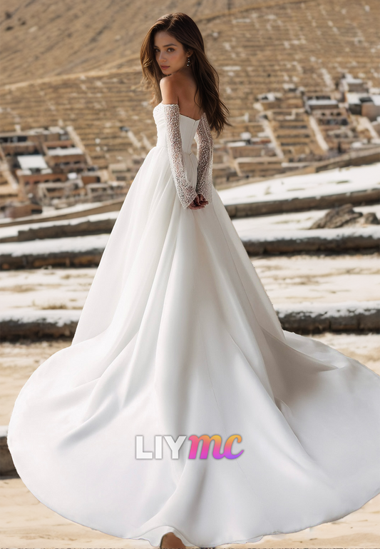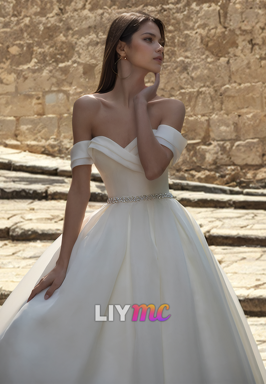 Off-Shoulder Strapless Pleated Satin Classic A-Line Wedding Dress