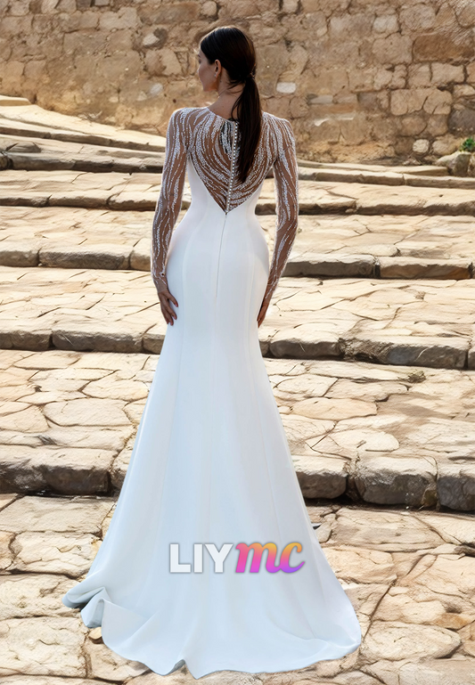Sweetheart Long Sleeves Illusion Sleek Mermaid Wedding Dress