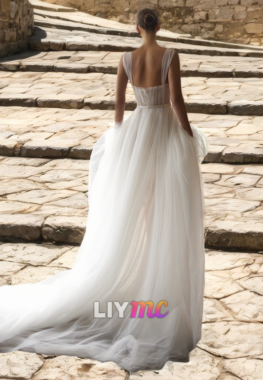 Sweetheart Sleeveless Tulle Side Slit Sheath Beach Wedding Dress