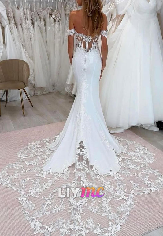 Off-Shoulder Appliques Mermaid Wedding Dress