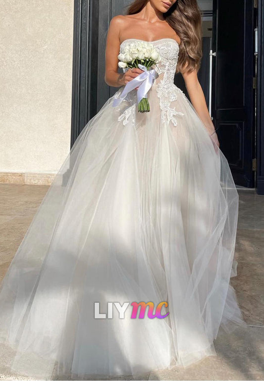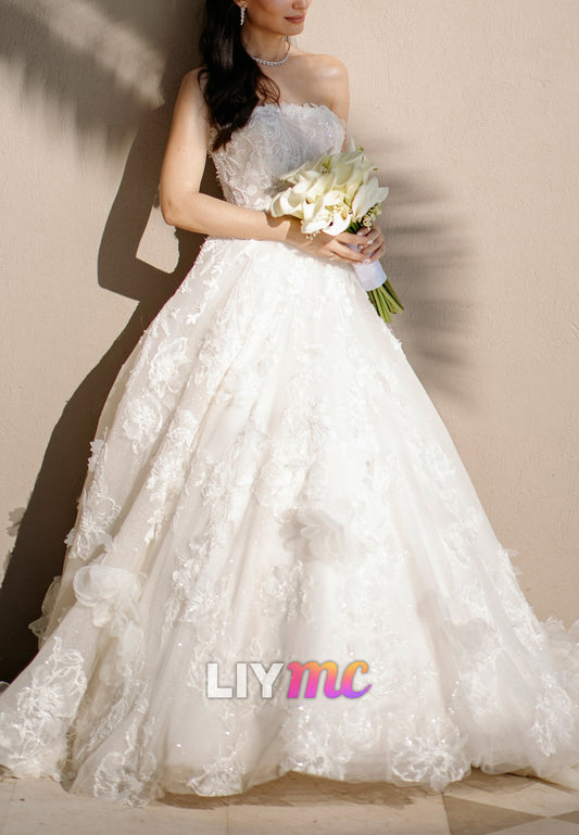 Sweetheart Strapless Appliques A-Line Wedding Dress