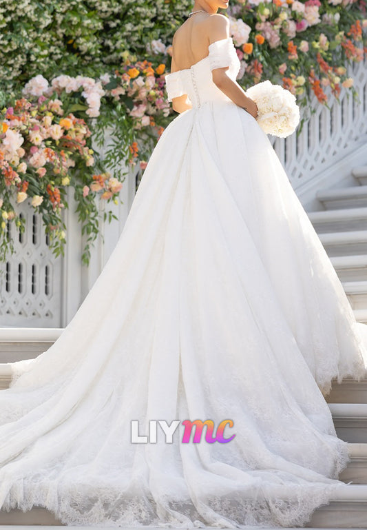 Off-Shoulder Lace Appliques Ball Gown Wedding Dress