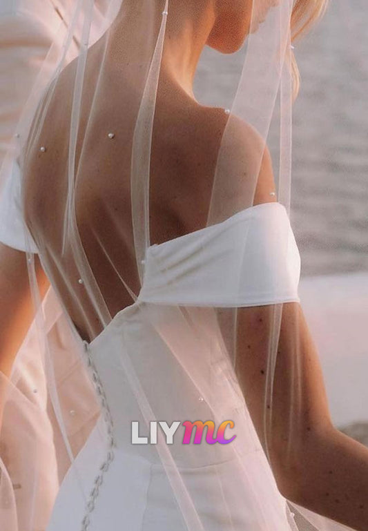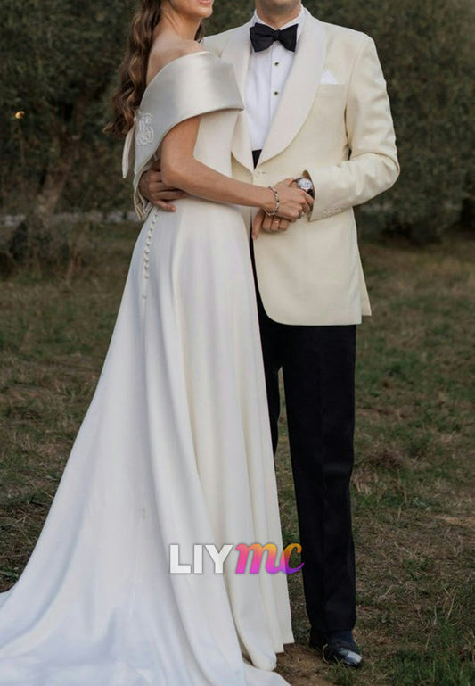 Off-Shoulder Sleek A-Line Simple Classic Wedding Dress