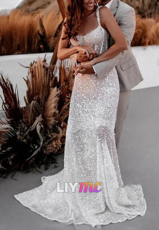 Sparkly Sheath Sweetheart Sequins Wedding Dresses