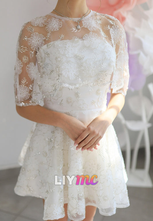 Straight Across Sleeveless Floral A-Line Short Wedding Dress