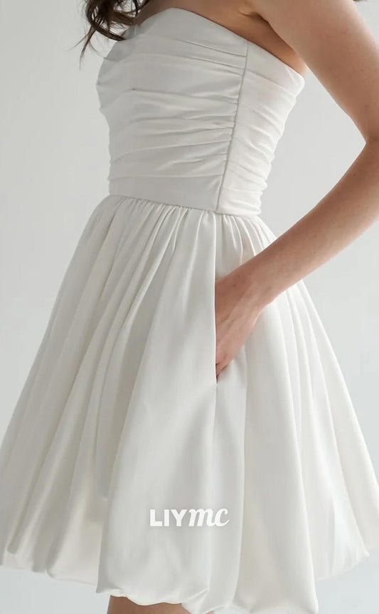 LW940 - Square Sleeveless Pleated A-Line Short Beach Wedding Dress