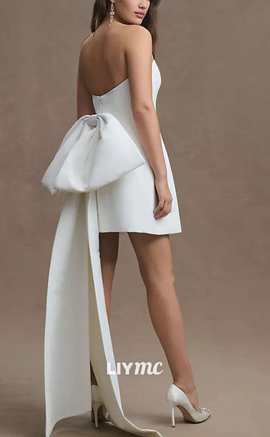 LW927 - Straight Across Sleeveless Sleek Satin Bowknots Pleated Short Beach Wedding Dress