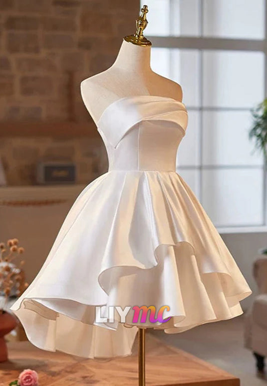 Straight Across Sleeveless Tiered A-Line Short Wedding Dress