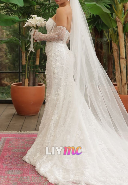 Sweetheart Floral Appliques Mermaid Wedding Dress