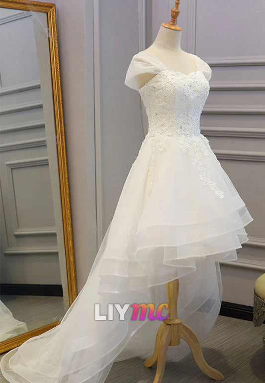 Sweetheart High Low Appliques Tiered A-Line Wedding Dress