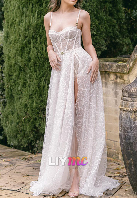 Sweetheart Spaghetti Straps Sheer A-Line Summer Wedding Dress