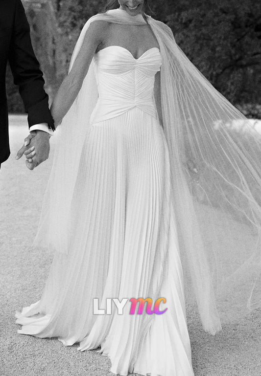 Sweetheart Strapless Pleated A-Line Simple Wedding Dress