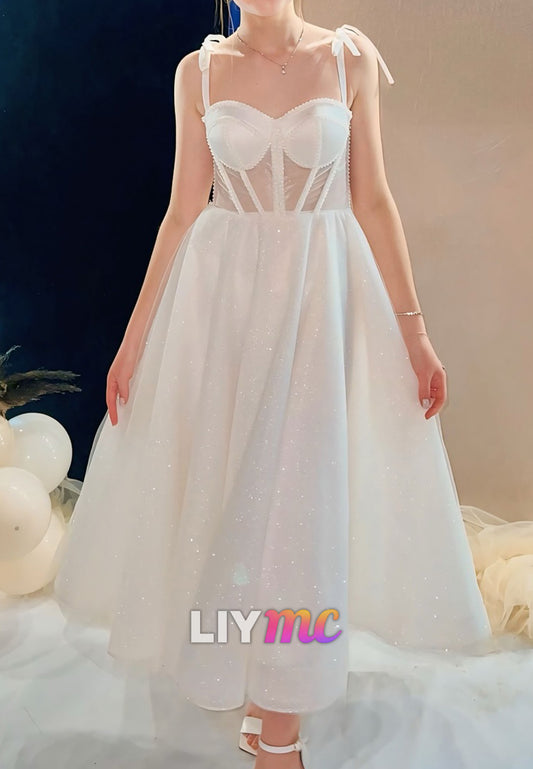Sweetheart Straps Tulle A-Line Midi Wedding Dress