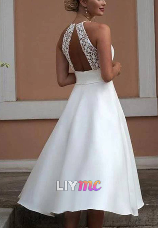 Scoop Sleeveless Appliques A-Line Midi Wedding Dress