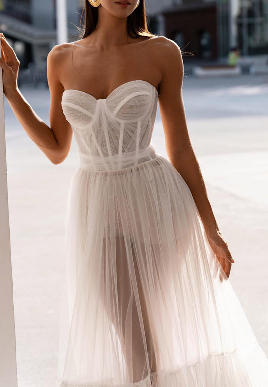 Sweetheart Strapless Tull Sheer A-Line Beach Wedding Dress