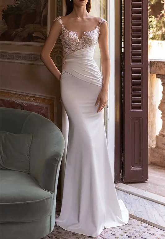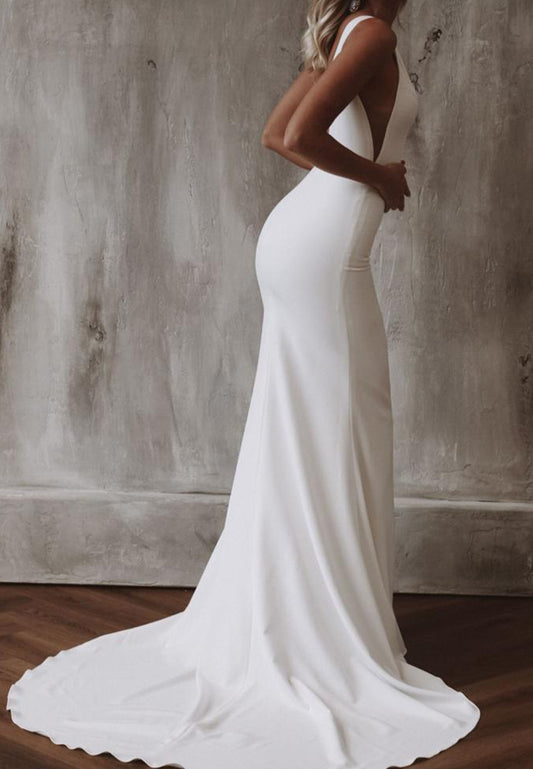 V-Neck Sleeveless Sleek Satin Mermaid Beach Wedding Dress