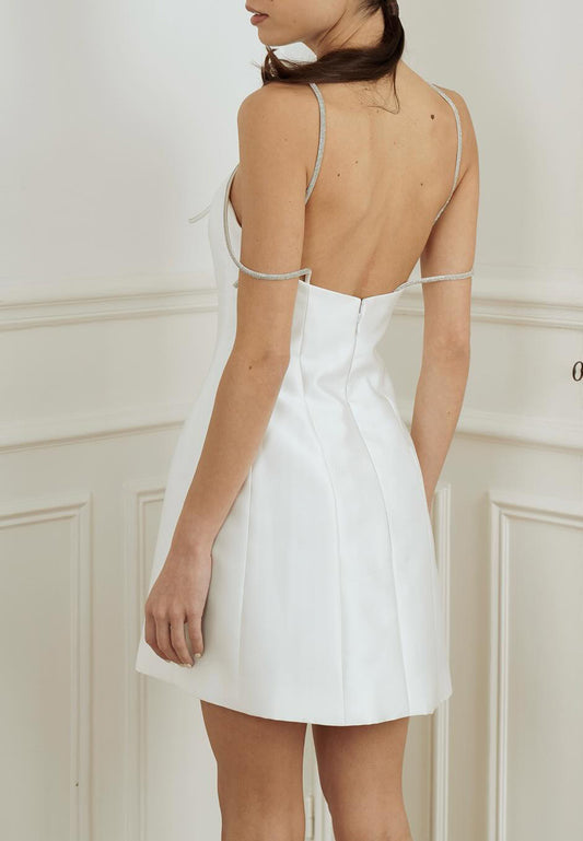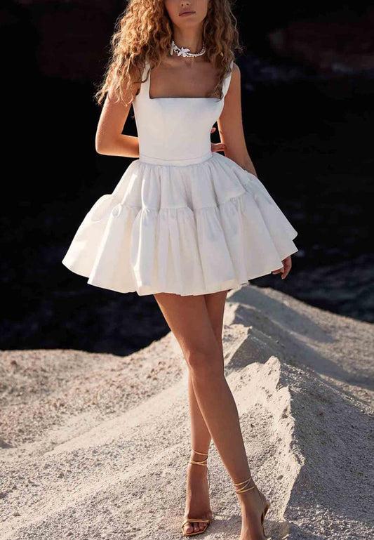 Square Sleeveless Pleated Sleek A-Line Short Wedding Dress