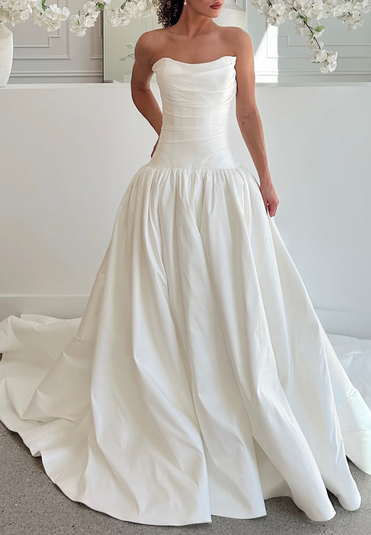 Sweetheart Strapless Empire Waist Pleated Satin Wedding Dress