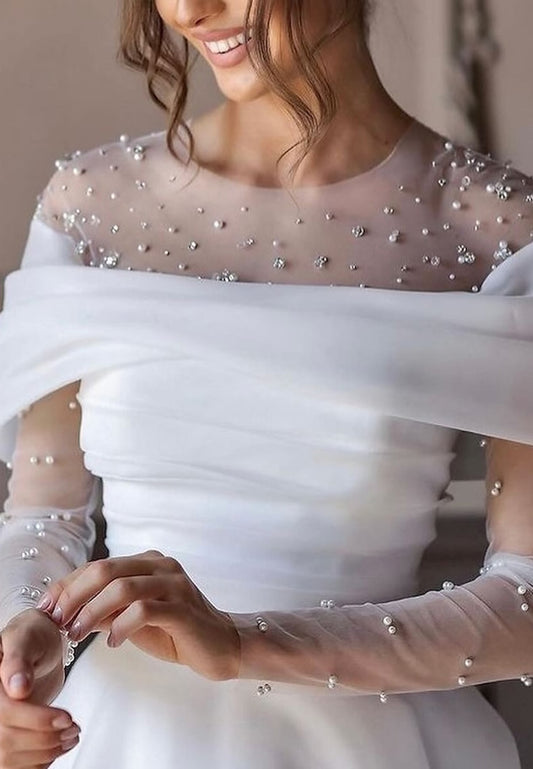 Scoop Long Sleeves Sleek Beaded A-Line Wedding Dress