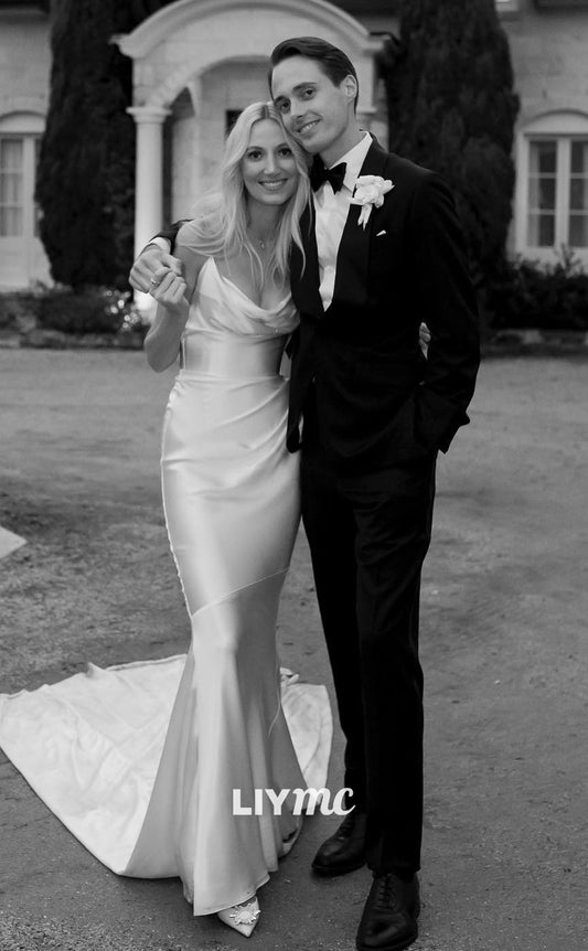 LW826 - Scoop Spaghetti Straps Sleek Satin Beach Wedding Dress