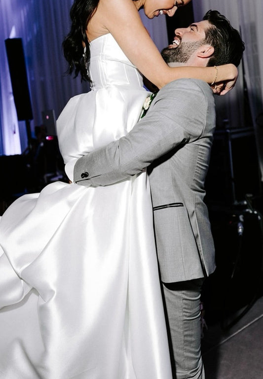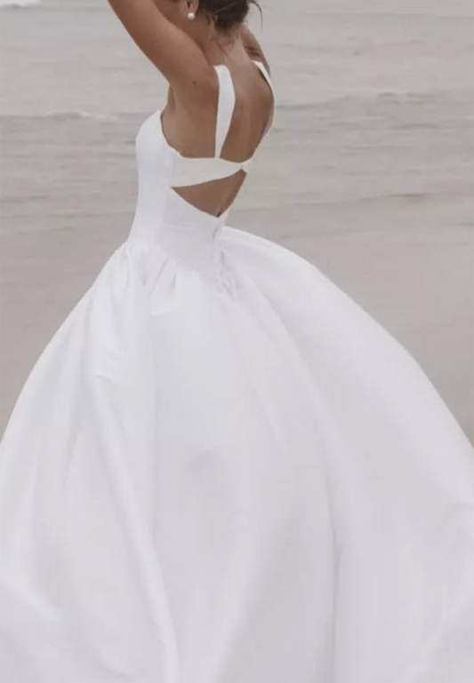 Square Straps Pleated Satin Simple A-Line Wedding Dress