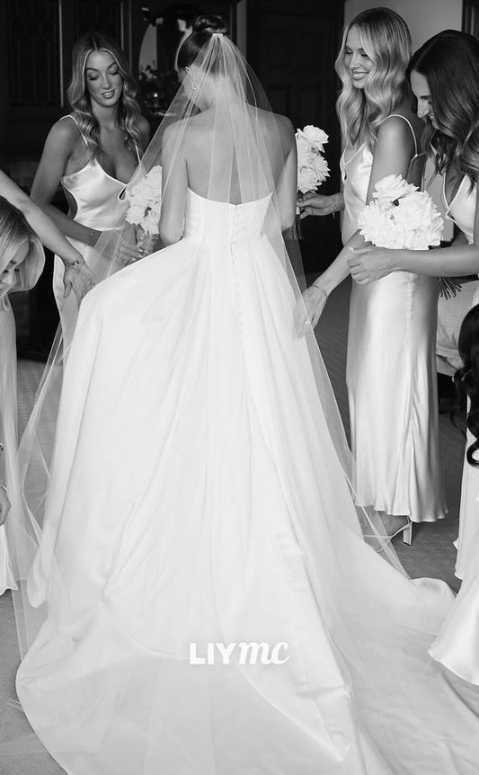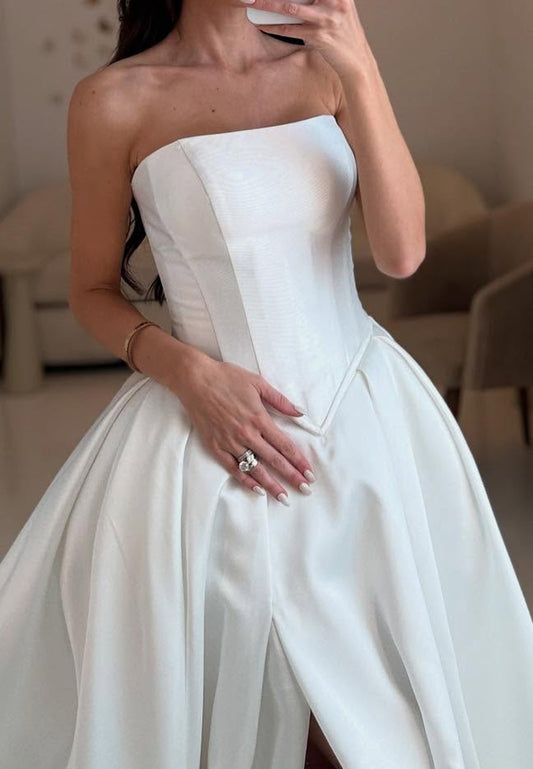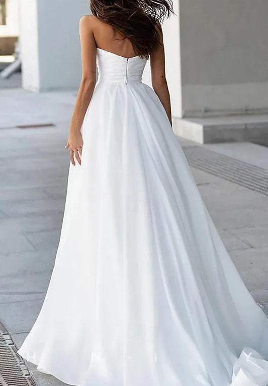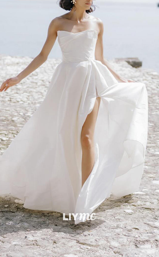 LW850 - Strapless Sleeveless Pleated High Slit A-Line Beach Wedding Dress