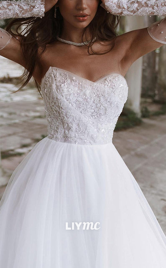 LW865 - Strapless Sleeveless Appliques Beaded A-Line Wedding Dress