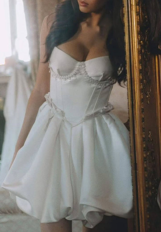 Sweetheart Straps Pearl Pleated A-Line Short Wedding Dress