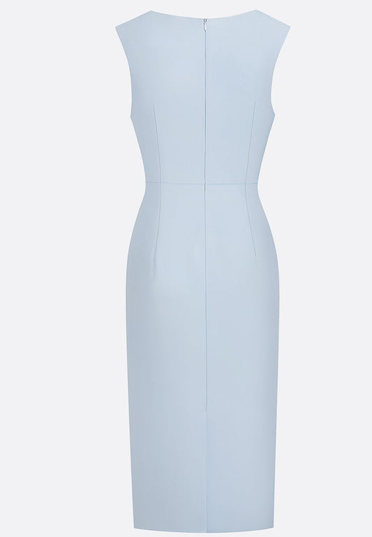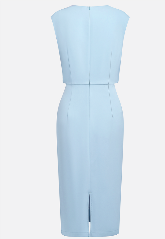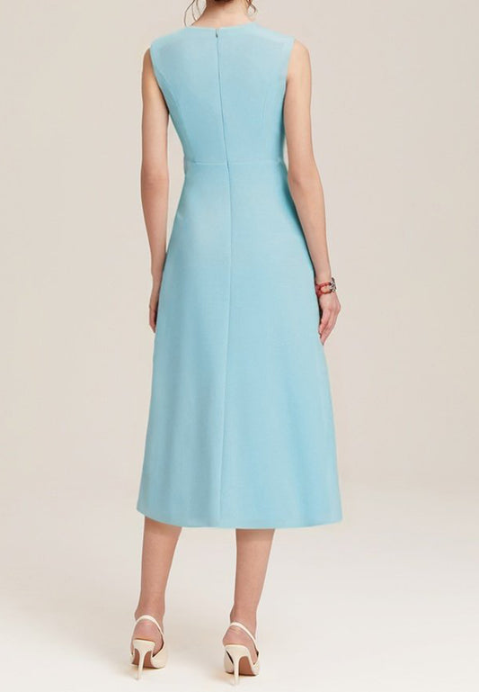 Light Blue Sleeveless Midi Elegant A-line Dress with Waist Twist for Day-to-Night