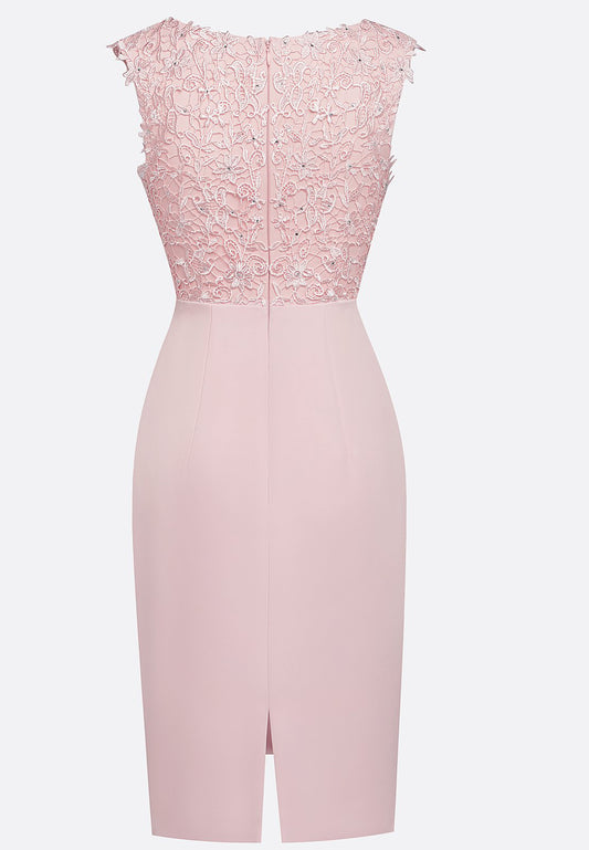 Pink Lace Hotfix Embellished Classic V Neck Sleeveless Sheath Midi Dress
