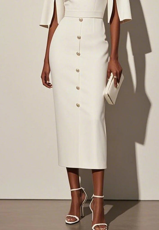 White Imitation Pearls Classic Crew Neck Half Sleeve Sheath Midi Dress
