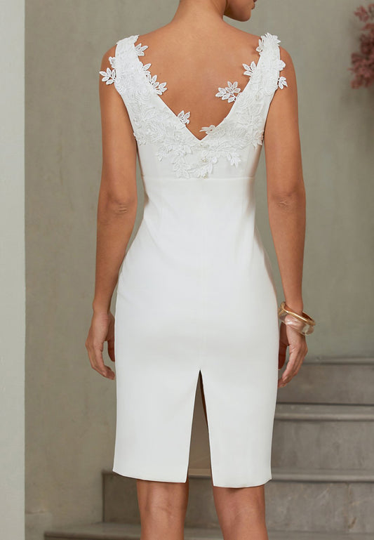 Cocktail Party Dress White Deep V Fitted Knee-length Dress