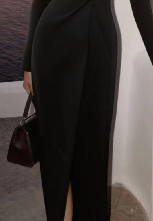 Work Dress Black White Lapel Long Sleeve Maxi Dress