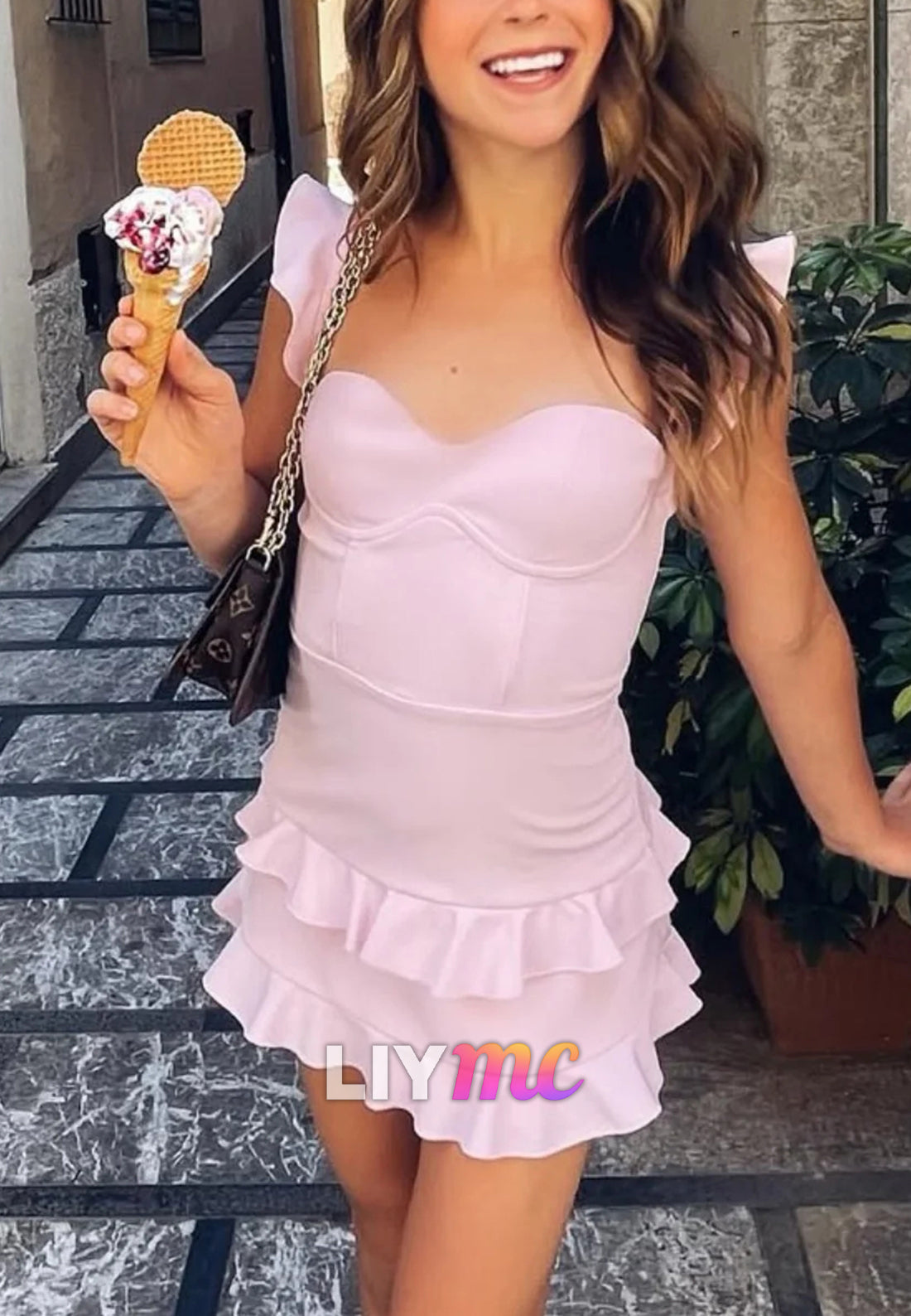 This sheath dress showcases a sophisticated sweetheart neckline with delicate straps and cascading ruffles, creating an elegant and flattering silhouette. Perfectly tailored for parties and homecoming events, it blends classic charm with contemporary style for a polished, memorable look.
